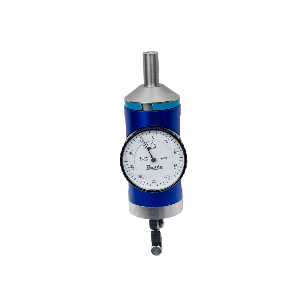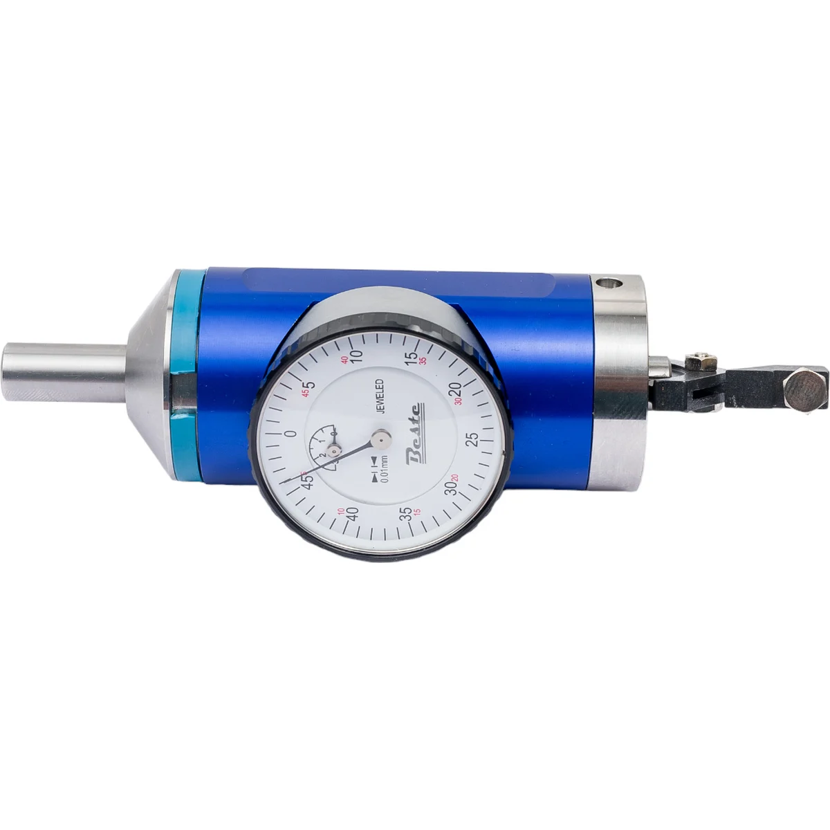 Индикатор-центроискатель BESTE 0-3мм, 0.01 мм AC00301110 используется для позиционирования шпинделя фрезерного станка относительно заготовки. Хвостовик вместе с индикаторным механизмом и щупом может свободно вращаться внутри корпуса устройства с индикаторной шкалой.