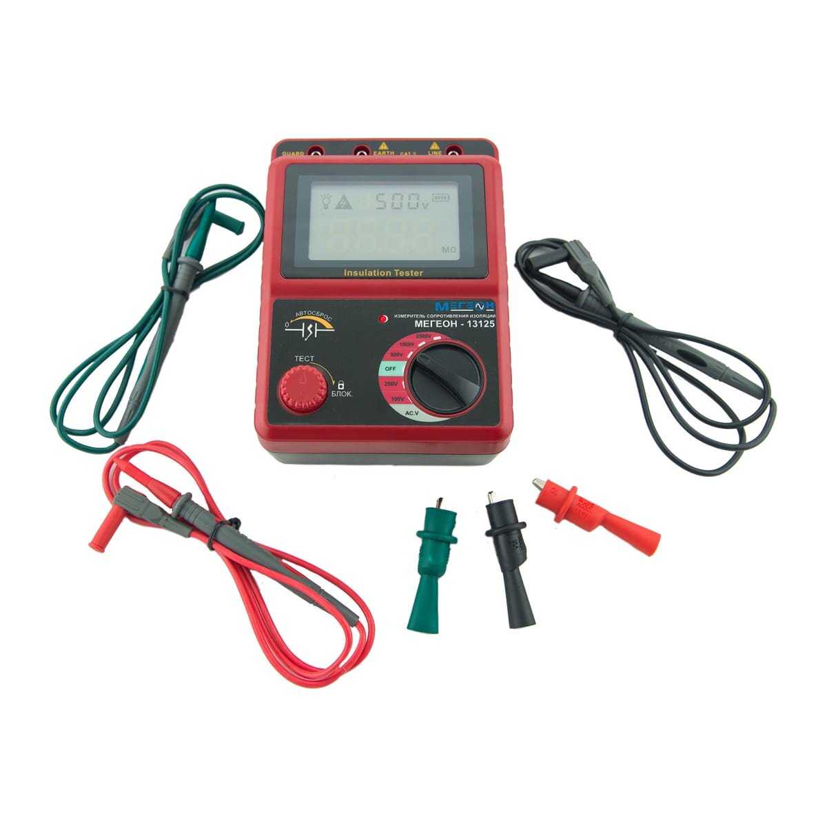 Тестовое напряжение: 100, 250, 500, 1000, 2500 В