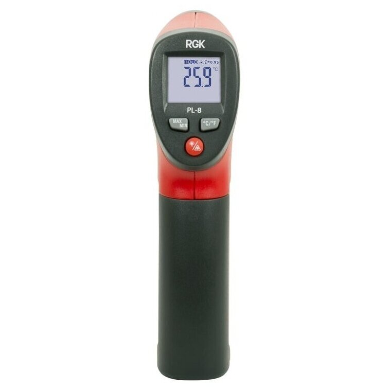 Пирометр RGK PL-8 используется для быстрого и безопасного определения температуры. Он имеет небольшой вес и компаткные размеры, но при этом присутствуют все необходимые функции. Прибор широко применяется на производстве, в сфере ЖКХ и в быту. Конструкцией предусмотрен лазерный указатель, который помогает точно определить область измерения. Модель поставляется с чехлом, в котором её удобно хранить и транспортировать.