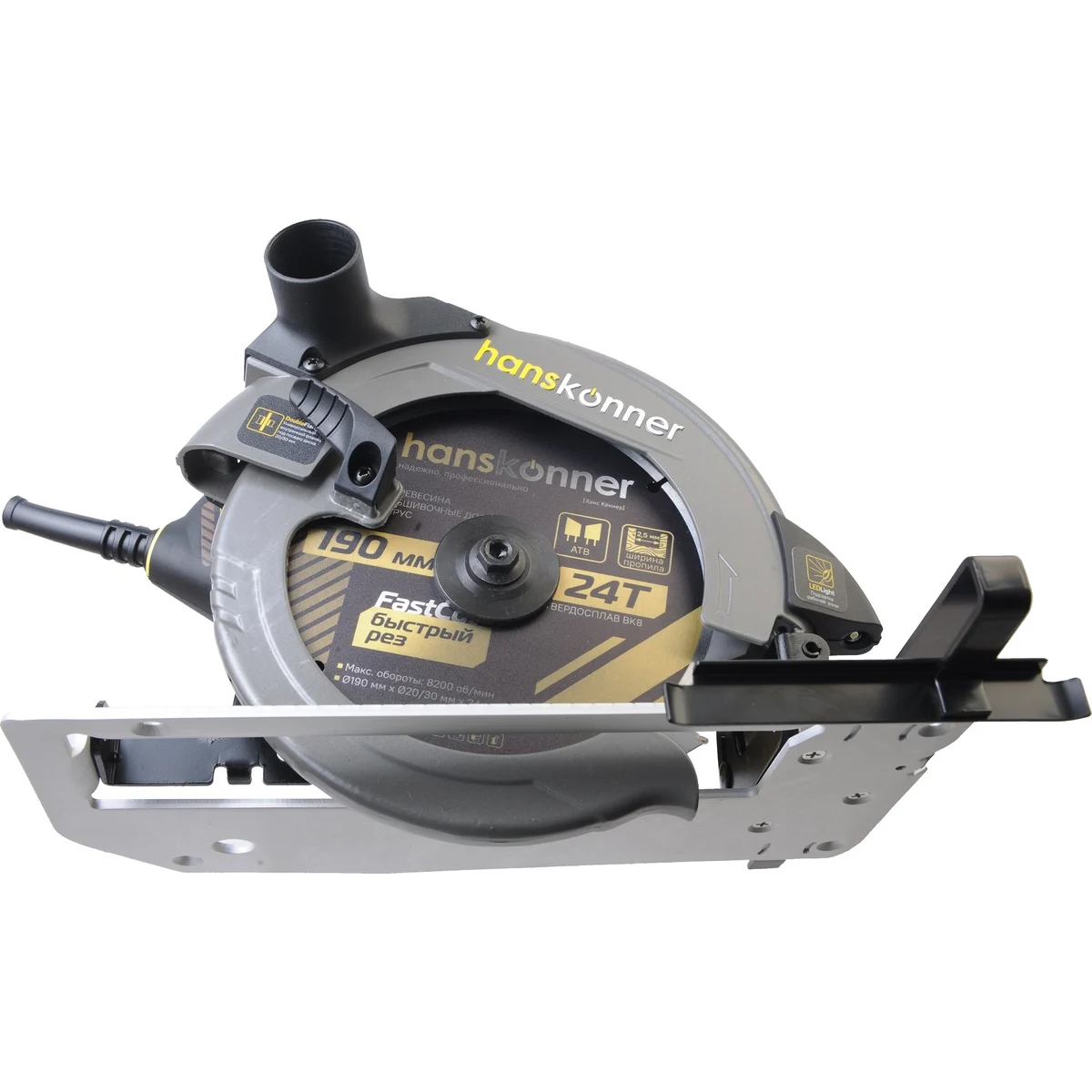 Пила циркулярная Hanskonner HCS50190 - надежный электроинструмент для осуществления прямых пропилов в заготовках из древесины, фанеры и пластмассы. Данная модель отличается прочной литой алюминиевой платформой, что способствует качеству и точности реза. Функция поддержания оборотов под нагрузкой содействует продуктивности работы, а плавный пуск долговечности инструмента. В комплекте идет универсальный фланец DoubleFlange под посадку диска 20/30 мм. Удобно применять рычаг фиксации основания для настройки глубины и угла пиления в одно движение. Также в конструкции циркулярной пилы предусмотрена возможность стационарного использования. При плохом освещении выручает встроенная LED-подсветка.