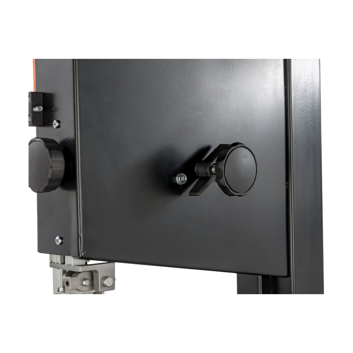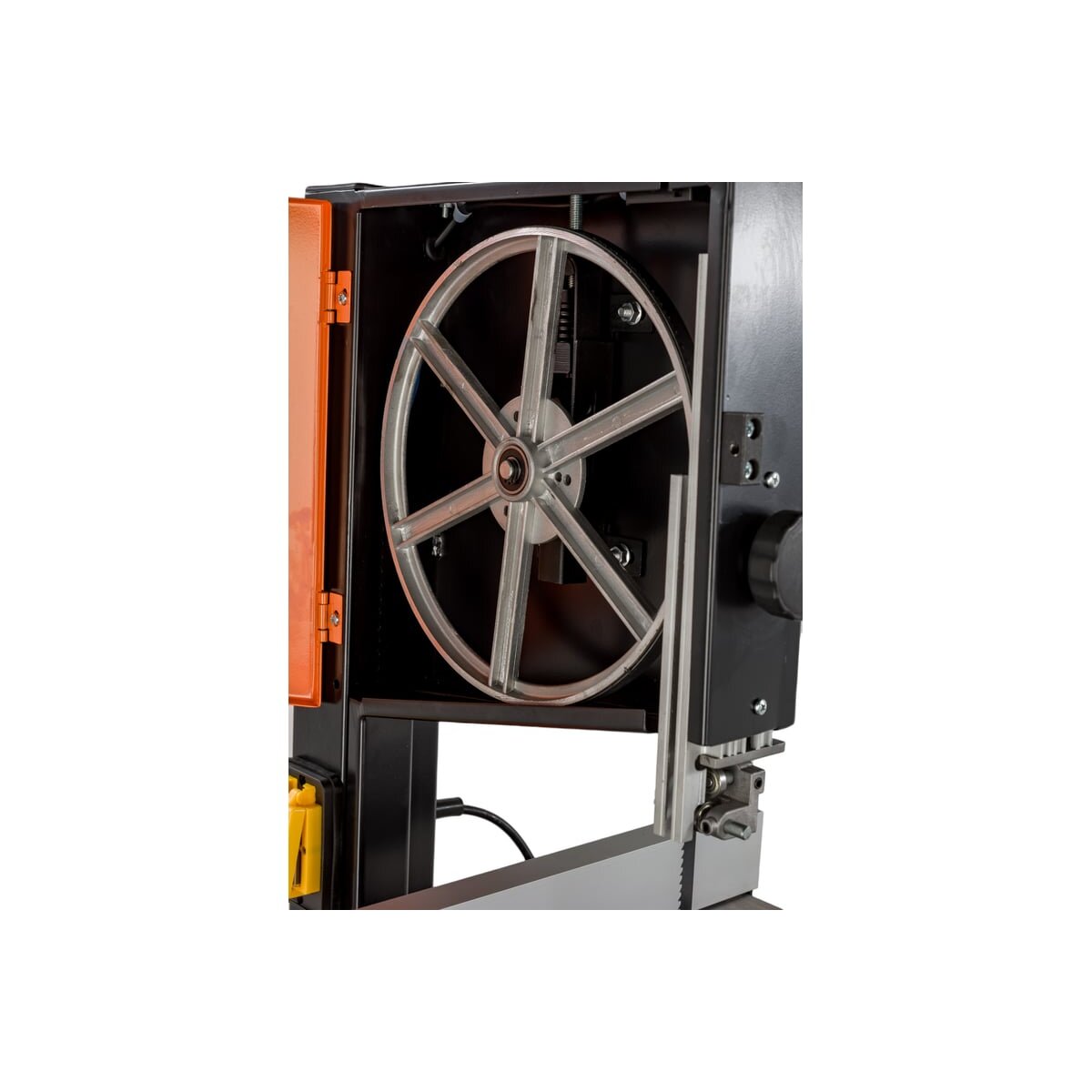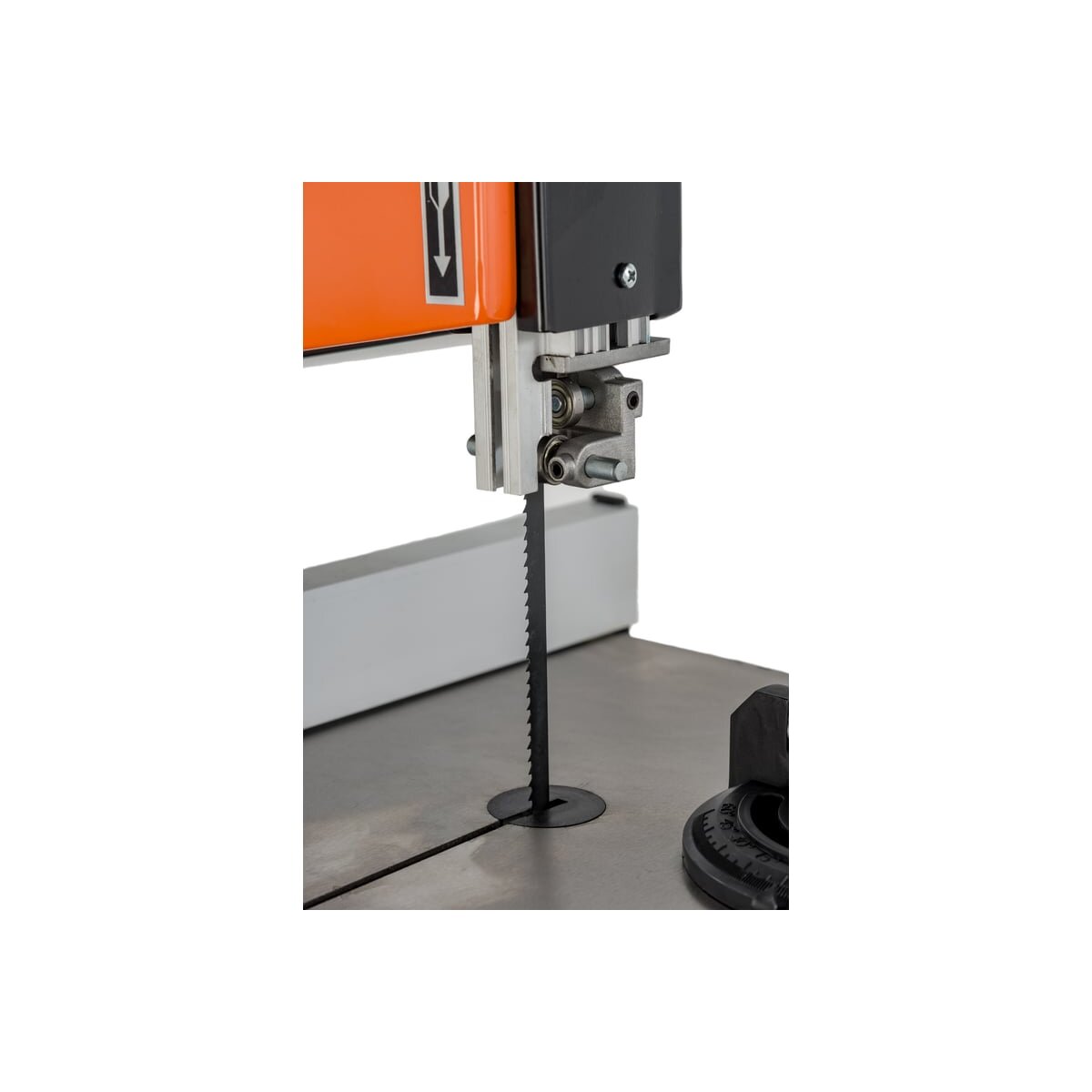 Возможность наклона стола позволяет расширить сферу применения ленточной пилы. Для сохранения чистоты на рабочем месте предусмотрена возможность подключения пылесоса.