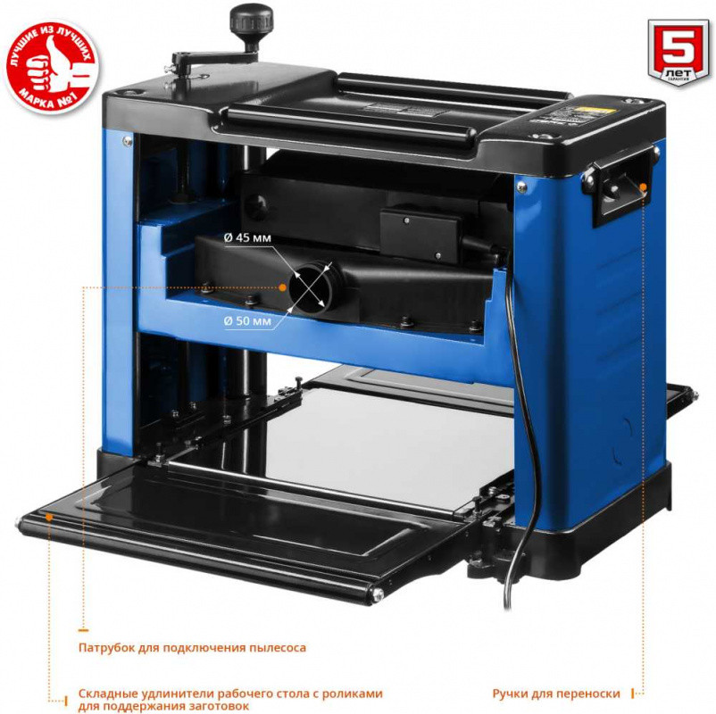 Особенности: Компактный переносной станок предназначен для одностороннего строгания заготовок из древесины в заданный размер по толщине. Удобен и прост в работе. Мощный двигатель с защитой от перегрузки и удлинители рабочего стола позволяют выполнить работу не только быстро, но и точно.