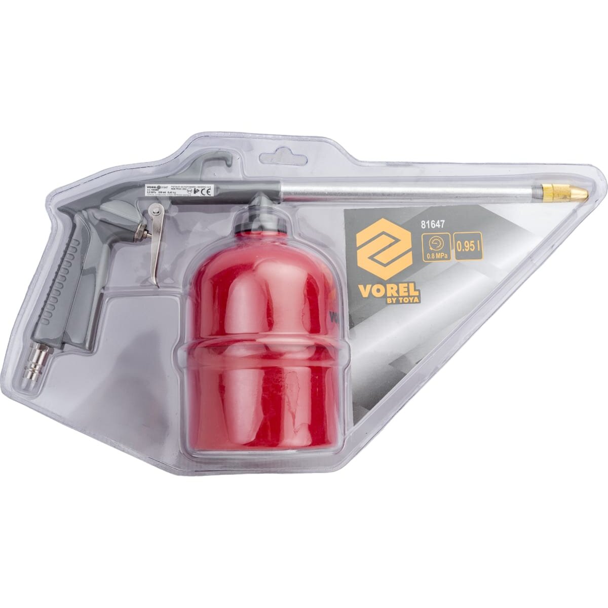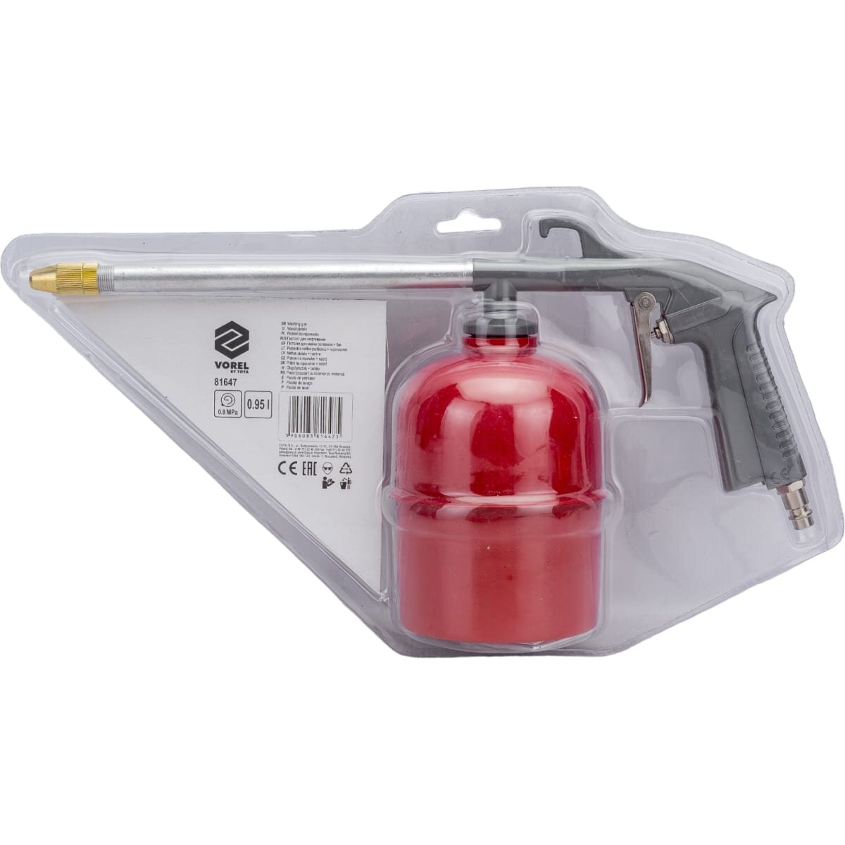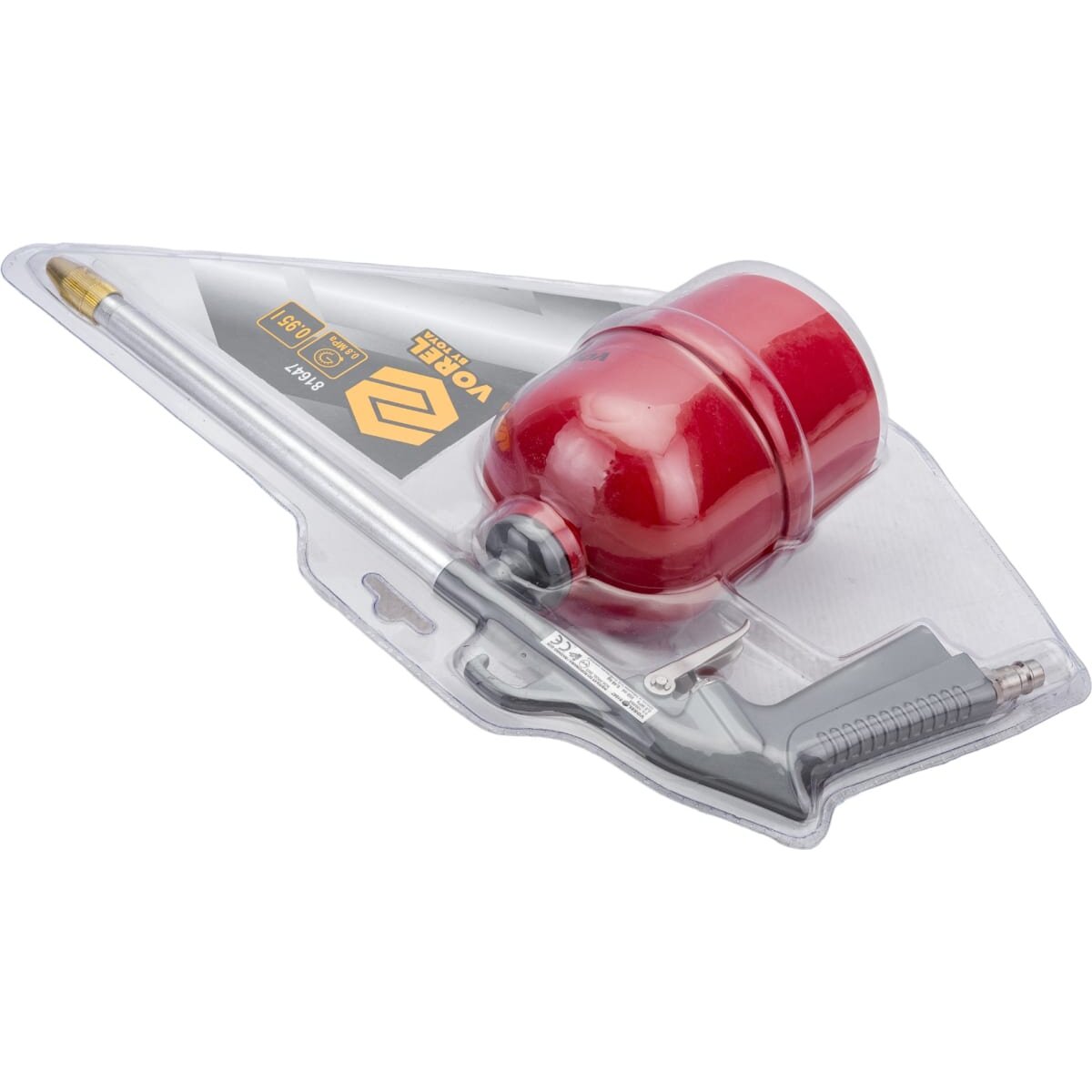 Пневматический промывочный пистолет VOREL 950мл 81647 предназначен для чистки различных поверхностей от загрязнений.