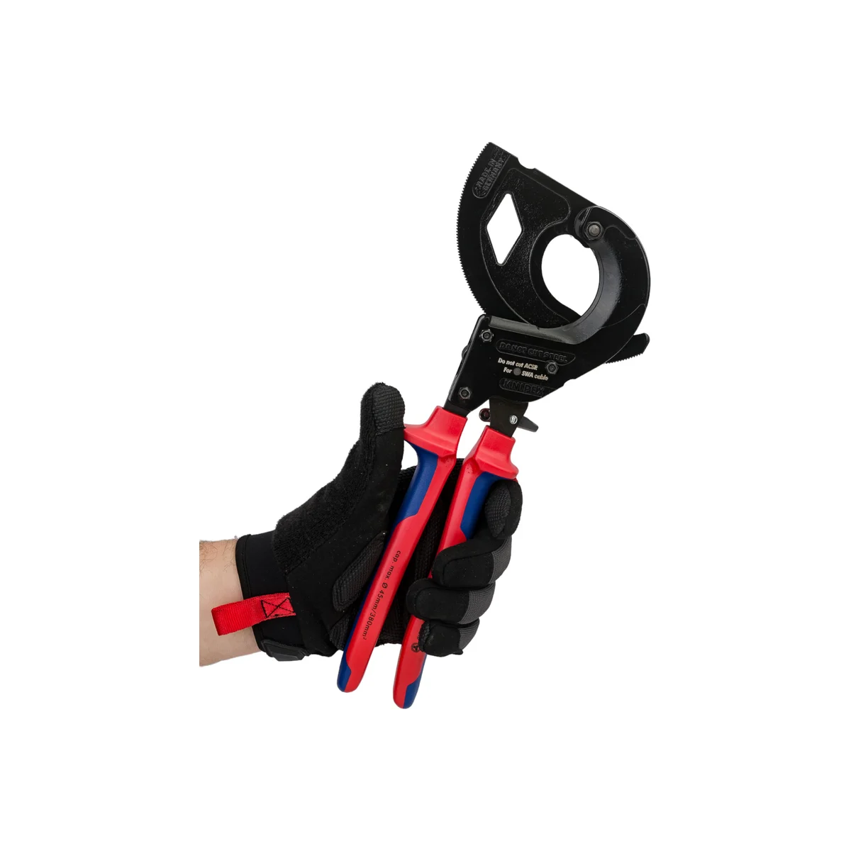 - Режет кабель со стальным армированием диаметром 45 мм / 380 мм 2 (например, 4 x 95 мм2) при работе одной и двумя руками;
