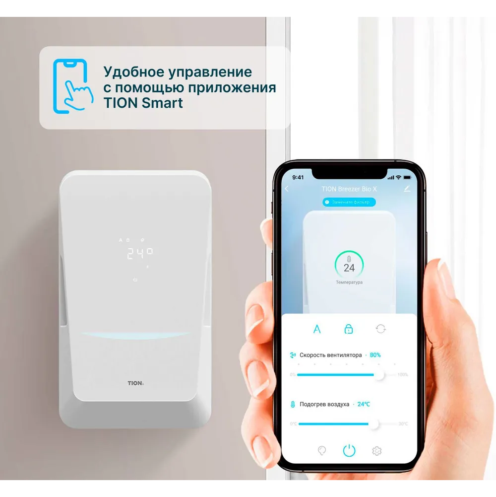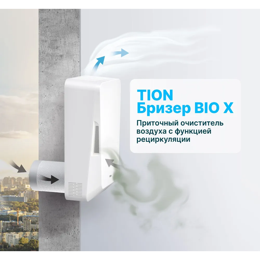 TION БРИЗЕР BIO-X – приточный очиститель воздуха с компактными габаритами и высокой степенью очистки воздуха для безопасного проветривания.