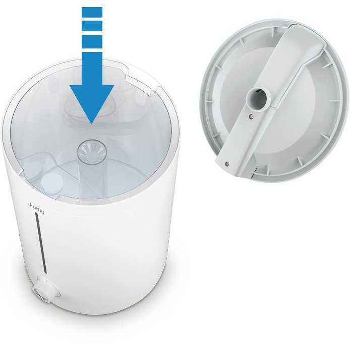 водяной фильтр, цельнолитой съемный резервуар для воды; подсветка корпуса; регулировка направления выдува и увлажнения; продолжительность работы: 10 ч