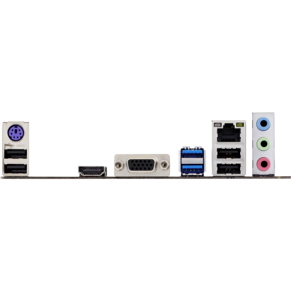 PS/2, 4 x USB 2.0, 2 x USB 3.2 Gen1, VGA, HDMI, RJ-45