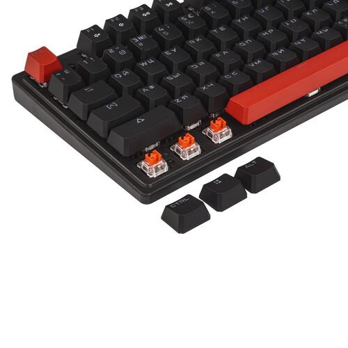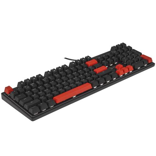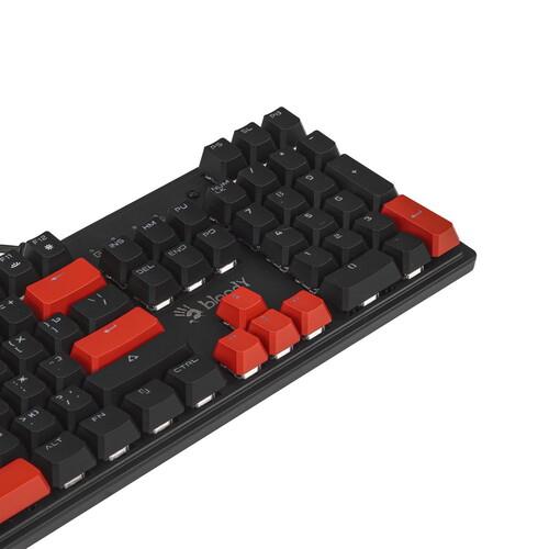 Клавиатура проводная A4Tech Bloody S515R выполнена в пластиковом корпусе с подставкой под запястье. Полноразмерная модель оснащена 104-мя клавишами, отдельным цифровым блоком и рядом Fn. RGB-подсветка облегчает работу за компьютером при недостатке освещения в комнате.