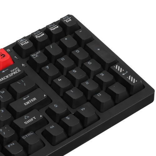 Клавиатура проводная A4Tech Bloody S98 Black выдерживает до 50 млн кликов. Переключатели Bloody BLMS Red Plus не издают громких звуков при нажатии и уменьшают нагрузку на пальцы. Кейкапы изготовлены из пластика высокой жесткости, устойчивого к истиранию символов. Исключить ошибки ввода позволяет интегрированная RGB-подсветка.