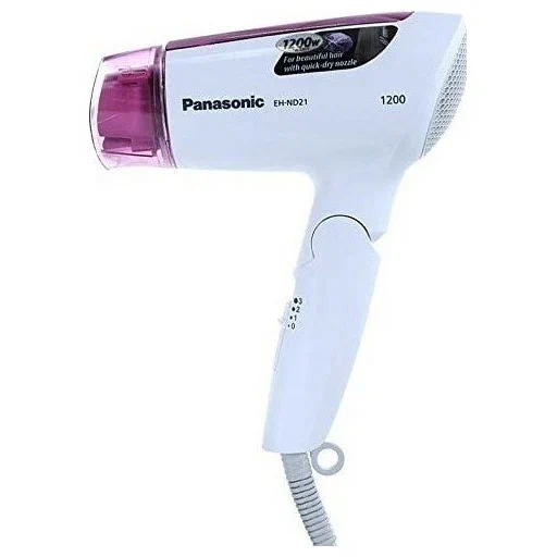 Фен Panasonic EH ND21 - это компактное устройство. Этот фен Panasonic имеет выходную мощность 1200 Вт для быстрой и эффективной работы. Фен Panasonic EHND21 обеспечивает наилучшую производительность и результаты для ваших волос. Этот фен оснащен насадкой для быстрой сушки, которая эффективно впитывает всю влагу ваших волос, обеспечивая идеальные результаты. Это средство безопасно в использовании и не приводит к ломкости или вьющимся волосам. У вас есть свобода выбора интенсивности подачи воздуха с помощью двух настроек "горячий" и одной "холодный". Он разработан таким образом, чтобы обеспечить удобство использования в дороге, и имеет тонкую конструкцию с возможностью складывания. Легкая сушка С помощью этого фена Panasonic вы можете полностью высушить влажные волосы за считанные минуты. Он имеет выходную мощность 1200 Вт для бесперебойной работы и приготовления завтрака. Насадка для быстрой сушки поочередно выдувает сильный и слабый воздух, отделяя каждую прядь волос для достижения эффективных результатов. Он сушит волосы от корней, сохраняя при этом влагу, сохраняя ваши волосы