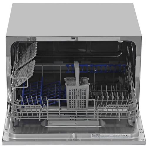 Посудомоечная машина MAUNFELD MLP-06DS на 6 комплектов оснащена 1 корзиной для посуды, лотком для столовых приборов и держателями для бокалов. Модель с частичной защитой от протечек обладает 6 уровнями регулировки жесткости и ионообменником для смягчения воды. Функция Stop & Go позволяет одним касанием ставить машину на паузу, после чего так же легко возобновлять работу.