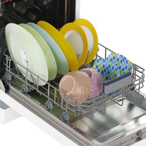 **10 комплектов посуды** - это отличный показатель для семьи. Регулируемая корзина позволяет разместить посуду разных размеров. Организуйте пространство внутри машины так, как удобно вам.
