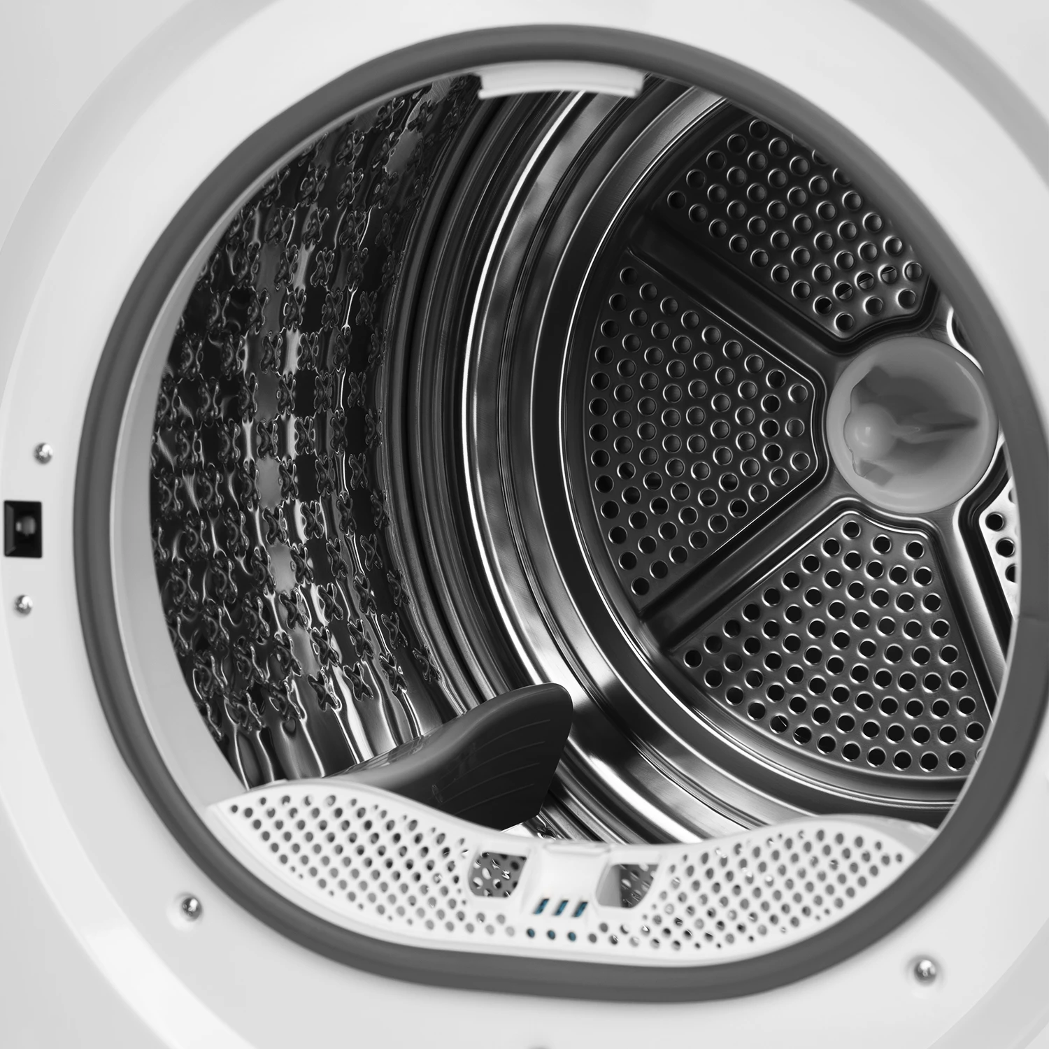 Белый цвет корпуса этой модели позволяет сушильной машине гармонично вписаться в любой интерьер, придавая помещению аккуратный и современный вид.
