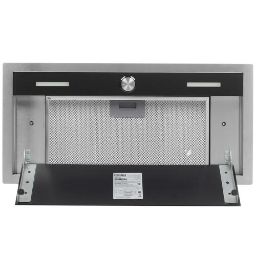 Вытяжка Haier HVX-BI664GB предназначена для полного встраивания в кухонный шкаф. Рамка внешней части вытяжки изготовлена из нержавеющей стали и практически не выступает из кухонной панели, а жировой фильтр закрыт стеклянной панелью, вокруг которой происходит всасывание воздуха. Такую панель легко мыть, а периметрическое всасывание считается более эффективным. Для удобства управления предусмотрен утапливаемый регулятор выбора режима работы. Модель имеет хорошие характеристики производительности, до 560 м³ воздуха в час, и может эффективно удалять загрязненный воздух, как в режиме воздухоотвода, так и в режиме рециркуляции при условии установки дополнительного угольного фильтра. Яркое светодиодное освещение обеспечит комфорт и удобство при приготовлении блюд на плите.