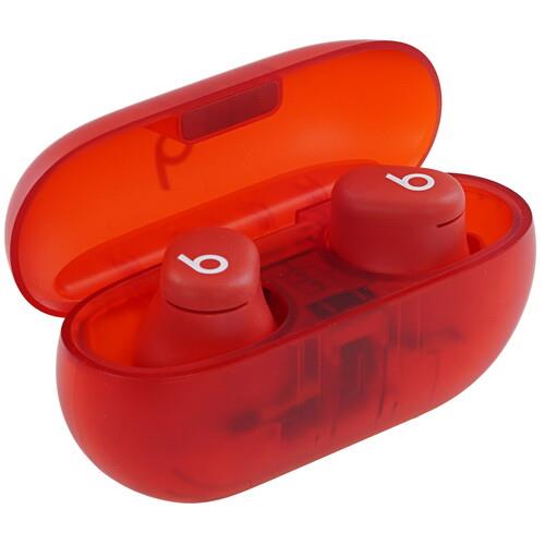 Красные наушники TWS Beats Solo Buds внутриканального типа присоединяются к звуковоспроизводящим устройствам по Bluetooth. Работают амбушюры независимо друг от друга благодаря дизайну True Wireless Stereo. Устройство создает закрытое акустическое оформление, чтобы ничто не отвлекало от подкастов и музыки. Микрофон TWS Beats Solo Buds получил фиксированное крепление и технологию шумоподавления. Управлять работой наушников можно со смартфона или при помощи голоса. Время их функционирования с зарядным кейсом составляет 18 ч.