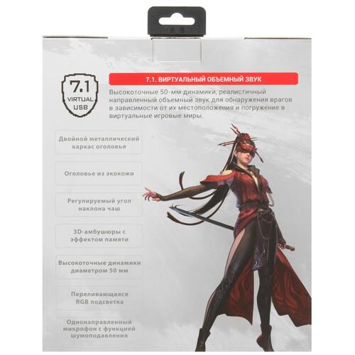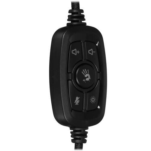 A4Tech Bloody G560 Naraka - полноразмерная игровая гарнитура с виртуальным объемным звуком, съемным микрофоном и переливающейся RGB подсветкой. Пульт управления микрофоном, громкостью и подсветкой находится на прочном плетеном кабеле длиной 2 метра.