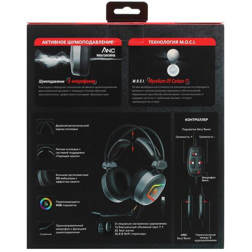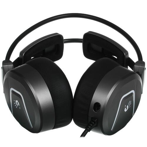 Эргономичное оголовье с мягкой подкладкой и охватывающие амбушюры из экокожи исключают усталость во время длительных игровых сеансов. A4Tech Bloody MC750 подключается к ПК и игровой консоли по кабелю с разъемом USB. На проводе расположен компактный пульт с кнопками отключения микрофона, управления подсветкой и регулировки громкости. Подсветка RGB придает устройству эффектный игровой стиль.