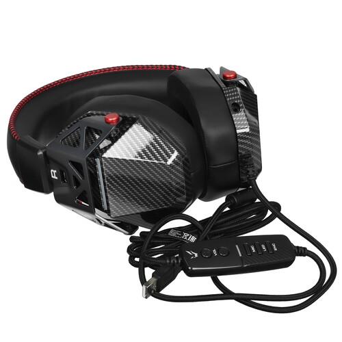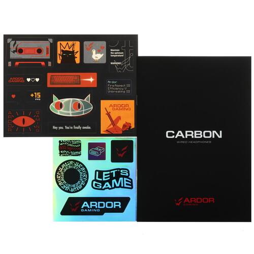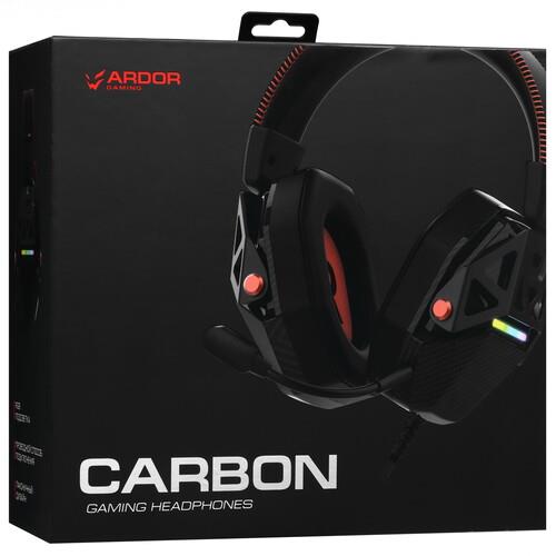 ARDOR GAMING Carbon - полноразмерная игровая гарнитура с виртуальным объемным звуком, съемным микрофоном и светодиодной подсветкой чашек.