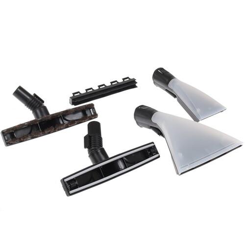 Поставляется пылесос Bosch BWD41720 с большим набором насадок и щеток, делающих его универсальным в уборке. С его использованием можно убираться в труднодоступных местах, под мебелью, в углах, вдоль плинтусов, очищать поверхность пола и мягкую мебель одинаково эффективно.