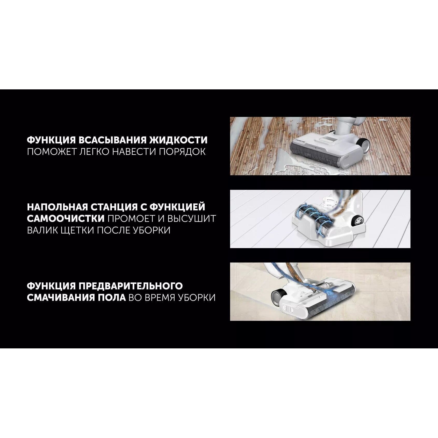 Функция предварительного смачивания пола перед уборкой.