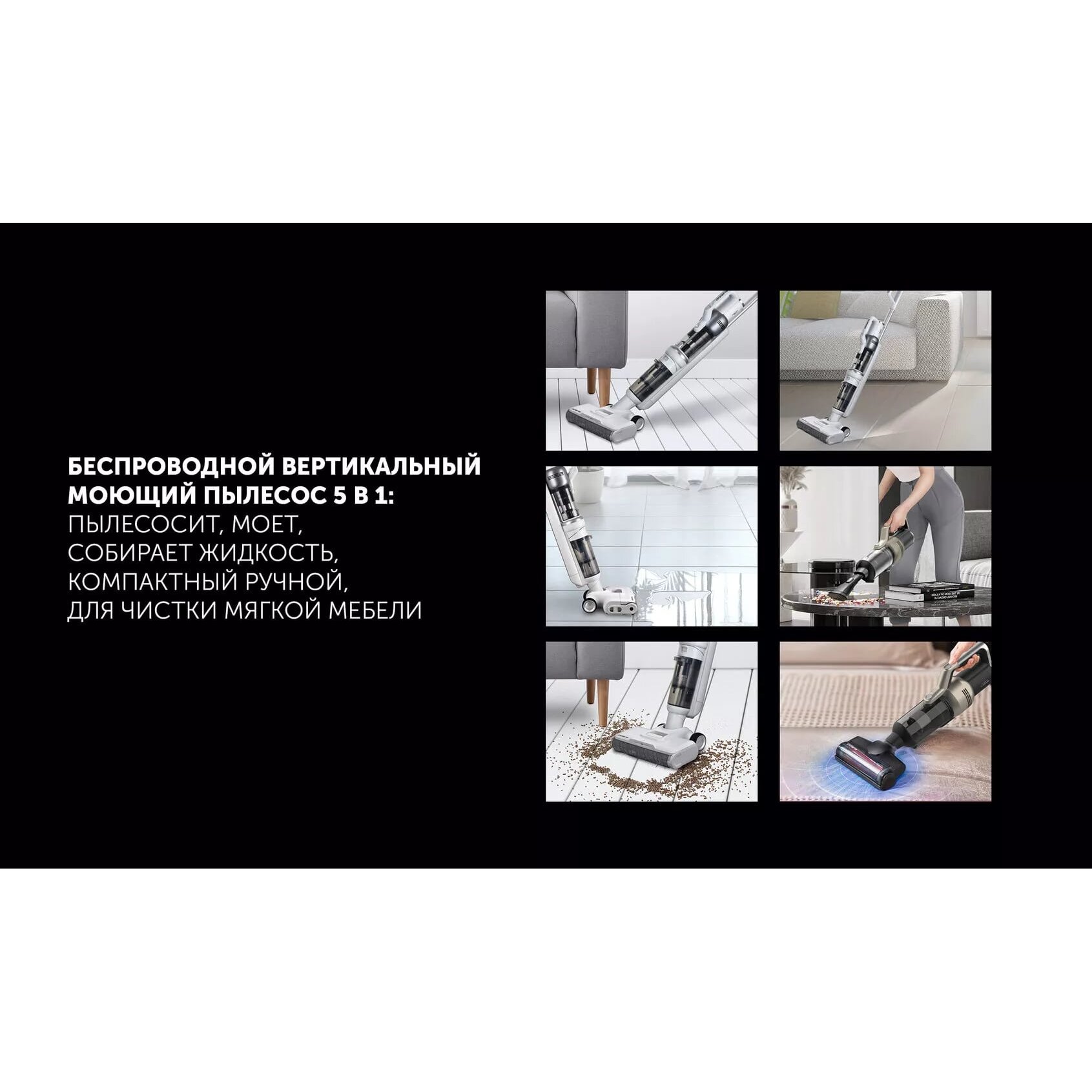 Беспроводной вертикальный моющий пылесос 5 в 1 подходит для сухой и влажной уборки.