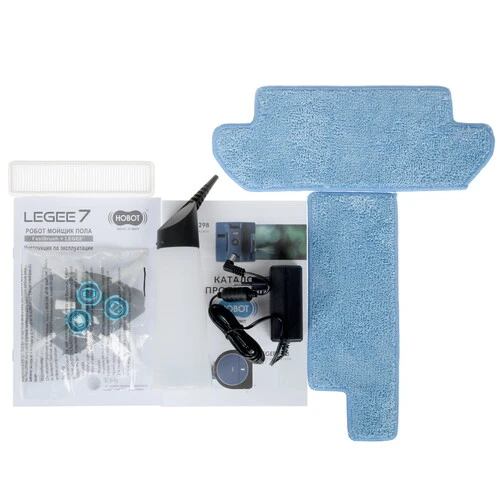 HEPA-фильтр х 2 шт, блок питания, боковая щетка х 3 шт, бутылочка для налива жидкости, док-станция, ещё