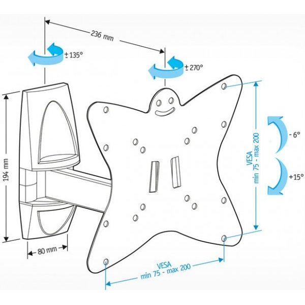 Поддержка крепления VESA 75×75, 100×100, 200×100, 200×200