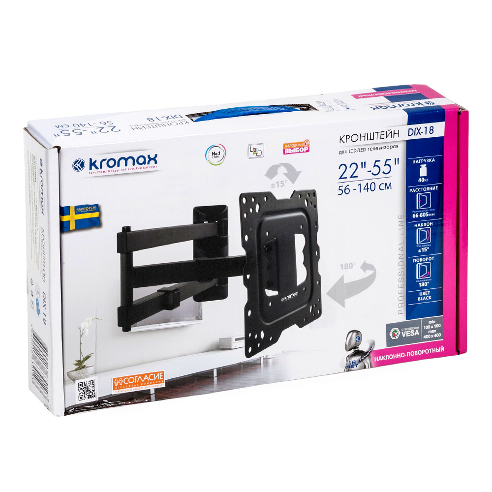 Максимальный вес телевизора: 40 кг