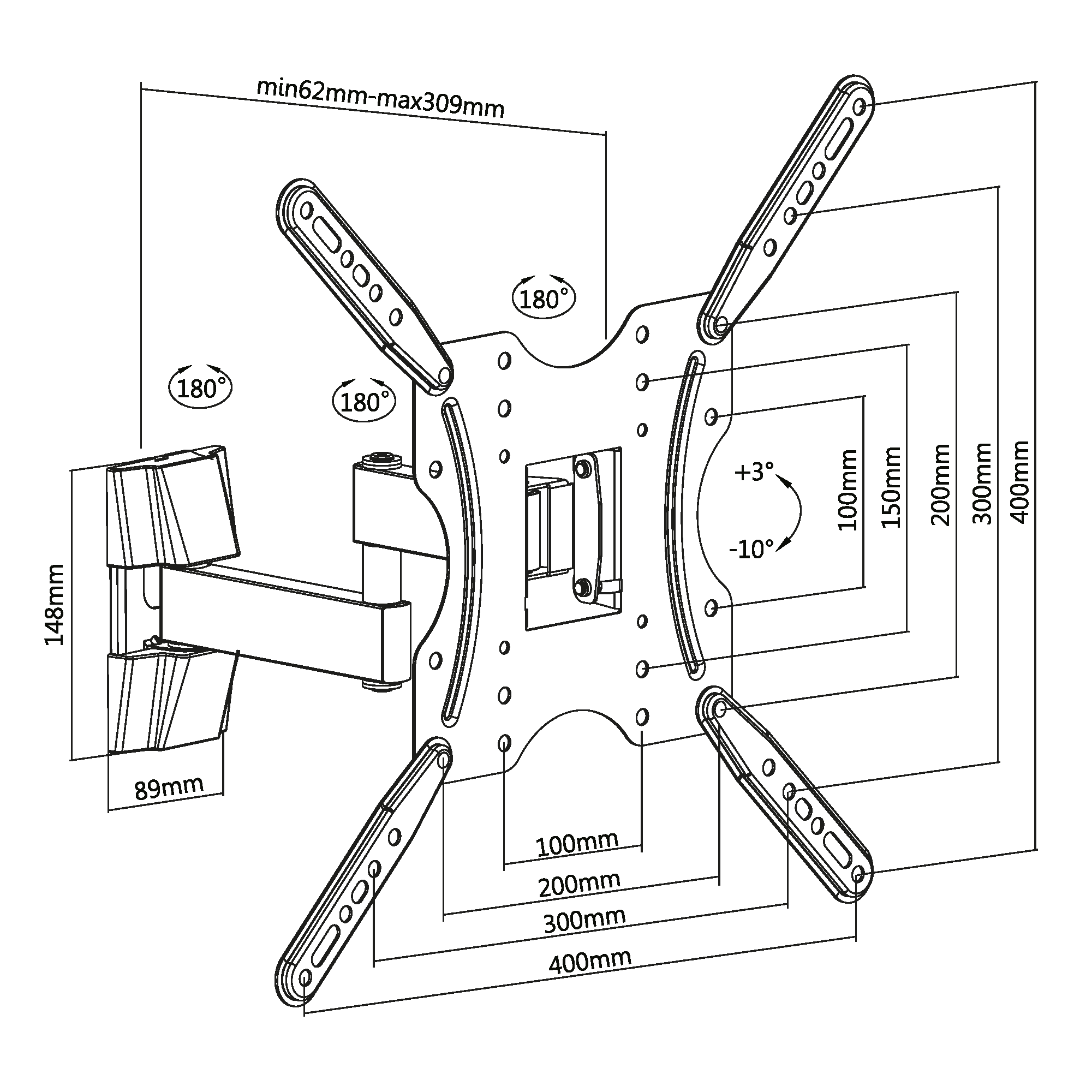 Расстояние от стены: 62~309 мм