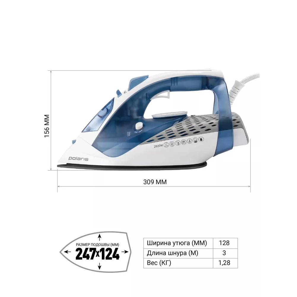 —Утюг Polaris PIR 2860AK белый/синий