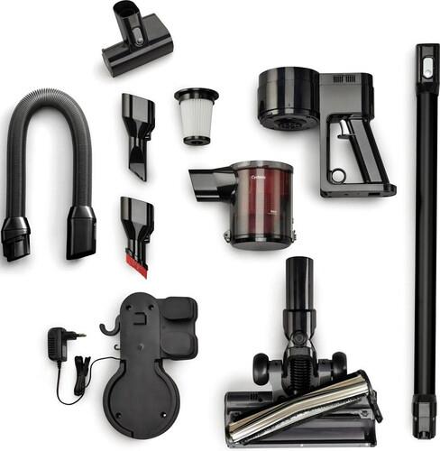 Модель работает от аккумулятора Li-ion, время работы которого составляет от 20 до 45 минут, а время зарядки — 6 часов. Индикатор зарядки аккумулятора и зарядная база обеспечивают удобство использования и контроль зарядки. Пылесос оснащен моющимся HEPA-фильтром, который эффективно улавливает мелкие частицы пыли и аллергенов, обеспечивая чистоту воздуха в помещении.