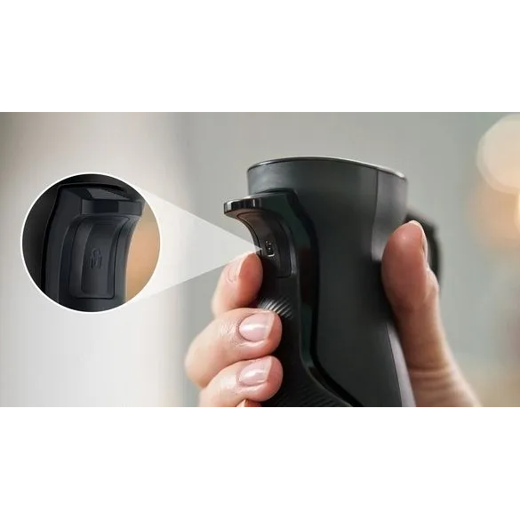 Управление блендером одной рукой стало еще удобнее: чем крепче хват, тем выше скорость. Большая кнопка регулировки скорости позволяет контролировать скорость с помощью нескольких пальцев или просто большого пальца.