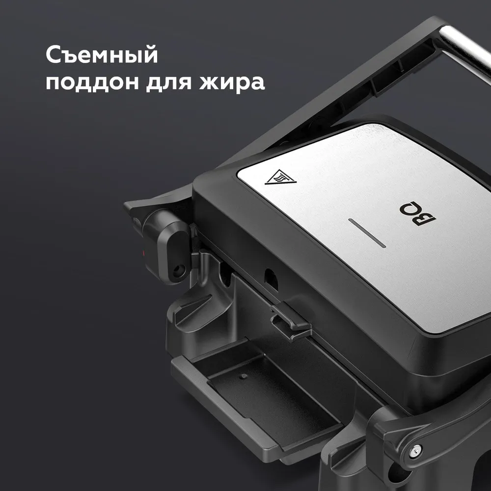 Конструктивные особенности тепловых приборов: Антипригарное покрытие, Вертикальное хранение, Поддон для сбора жира, Раскрытие на 180°