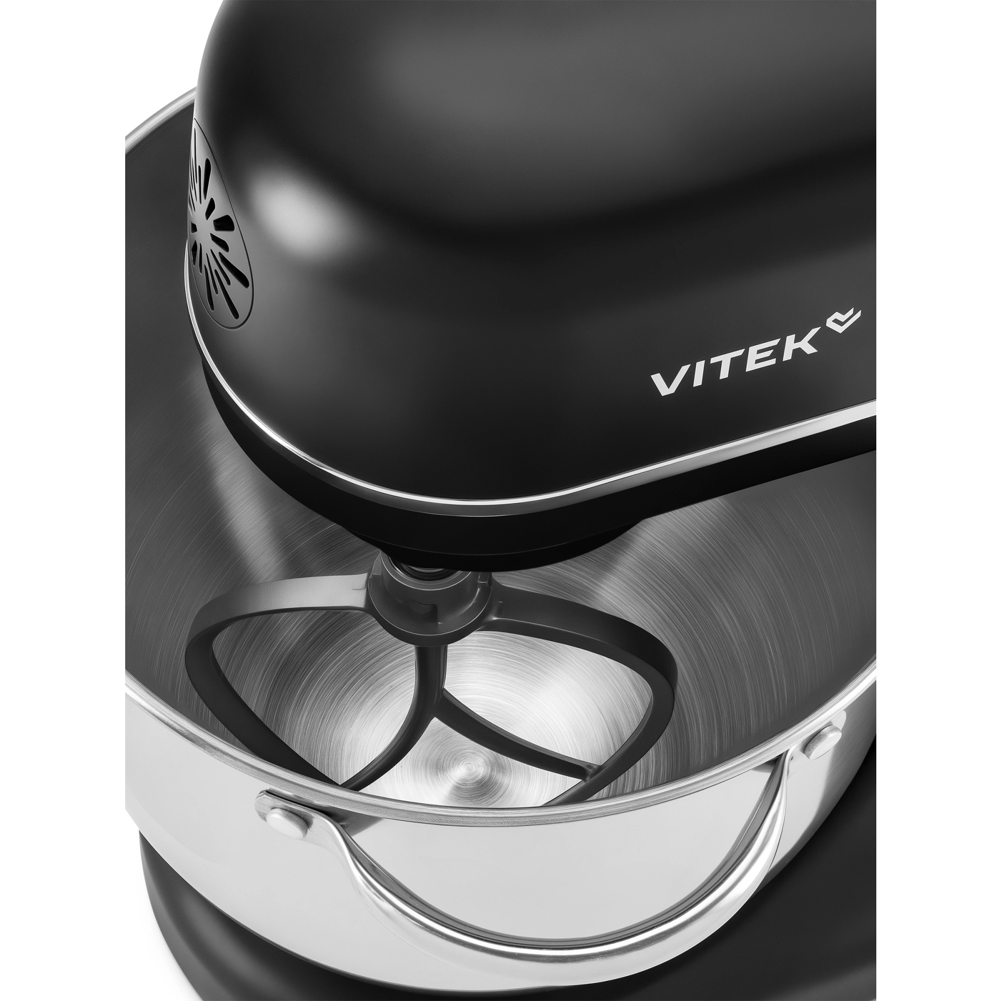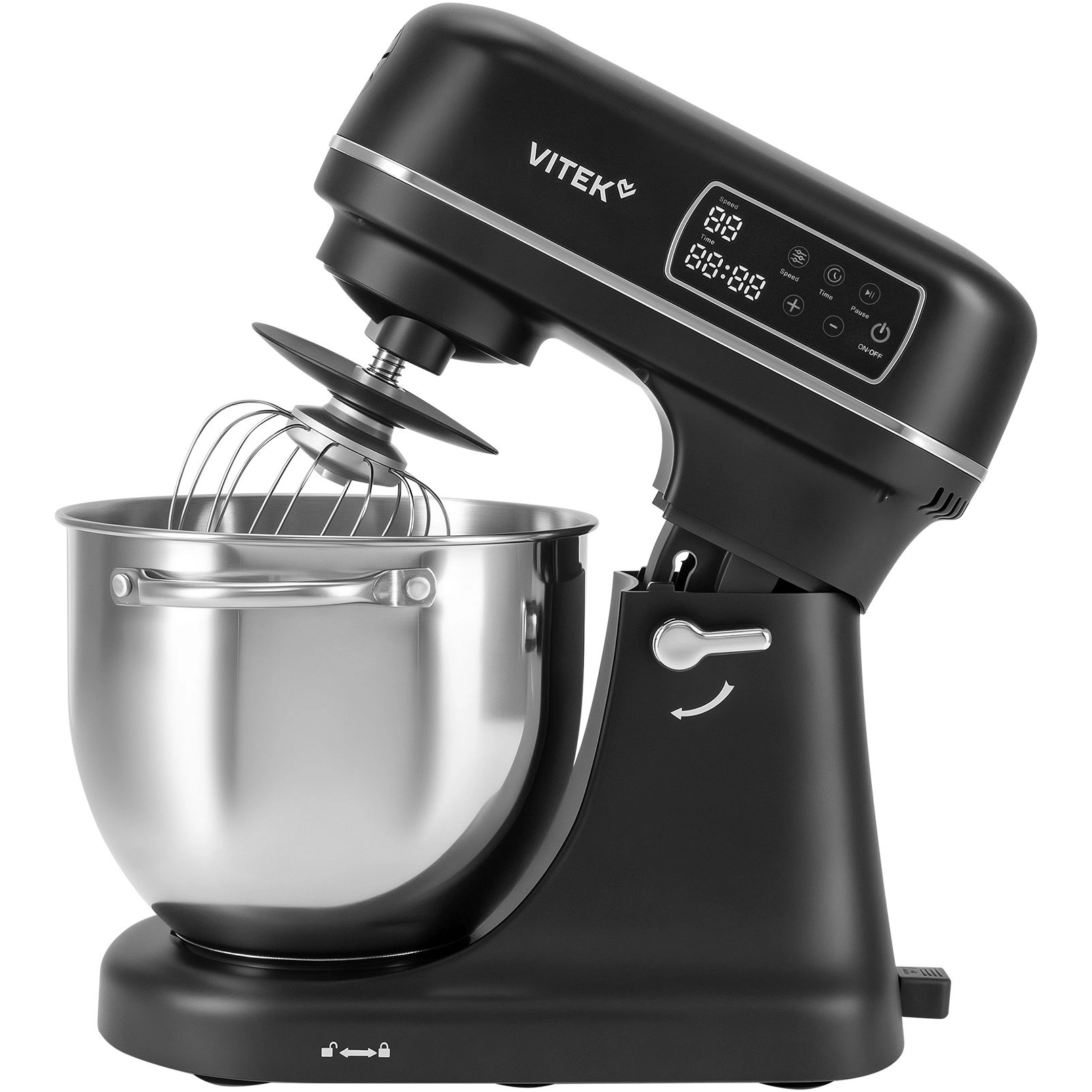 Миксер, чаша, защитный обод, насадка-венчик, насадка-крюк, насадка-лопатка, кулинарная силиконовая лопатка, книга рецептов, инструкция