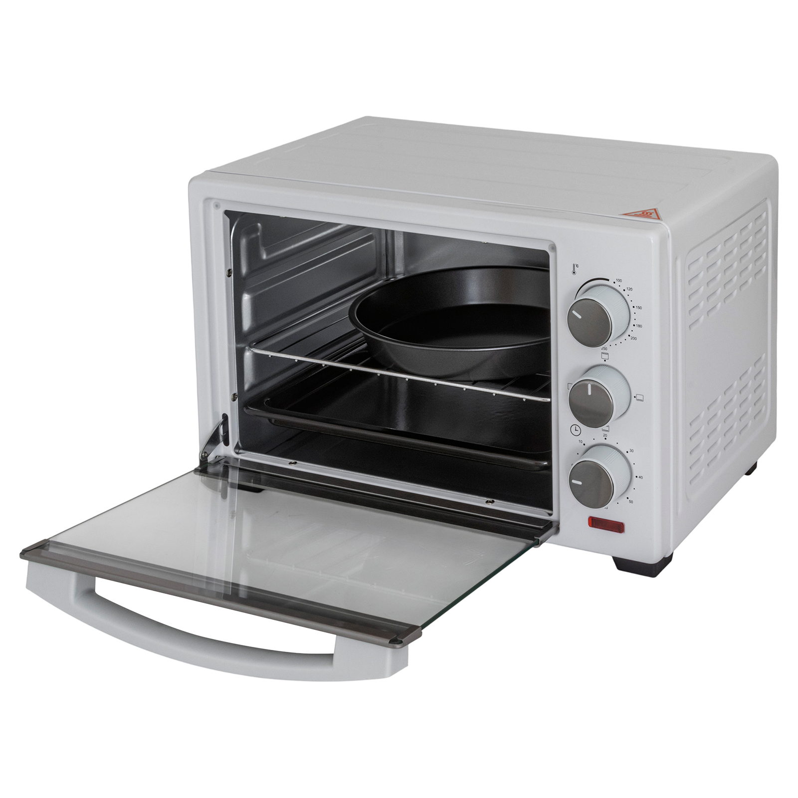 электропечь, металлическая решетка, плоский противень, круглая форма для пиццы, ухват для противня, инструкция на русском языке