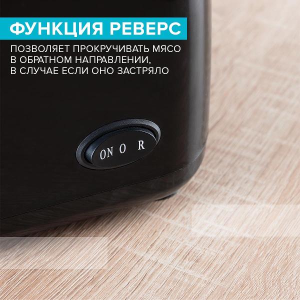 Мясорубка Scarlett SC-MG45S73 поддерживает функцию «Реверс». Это позволяет изменить вращение вала и безопасно извлечь кусочки при застревании. Модель имеет управление механического типа. Четыре пластиковые ножки с прорезиненными вставками обеспечивают устойчивость мясорубки на столе. При риске возникновения перегрева и поломки устройство автоматически отключается. Съемные элементы можно очистить от загрязнений вручную или с помощью посудомоечной машины.