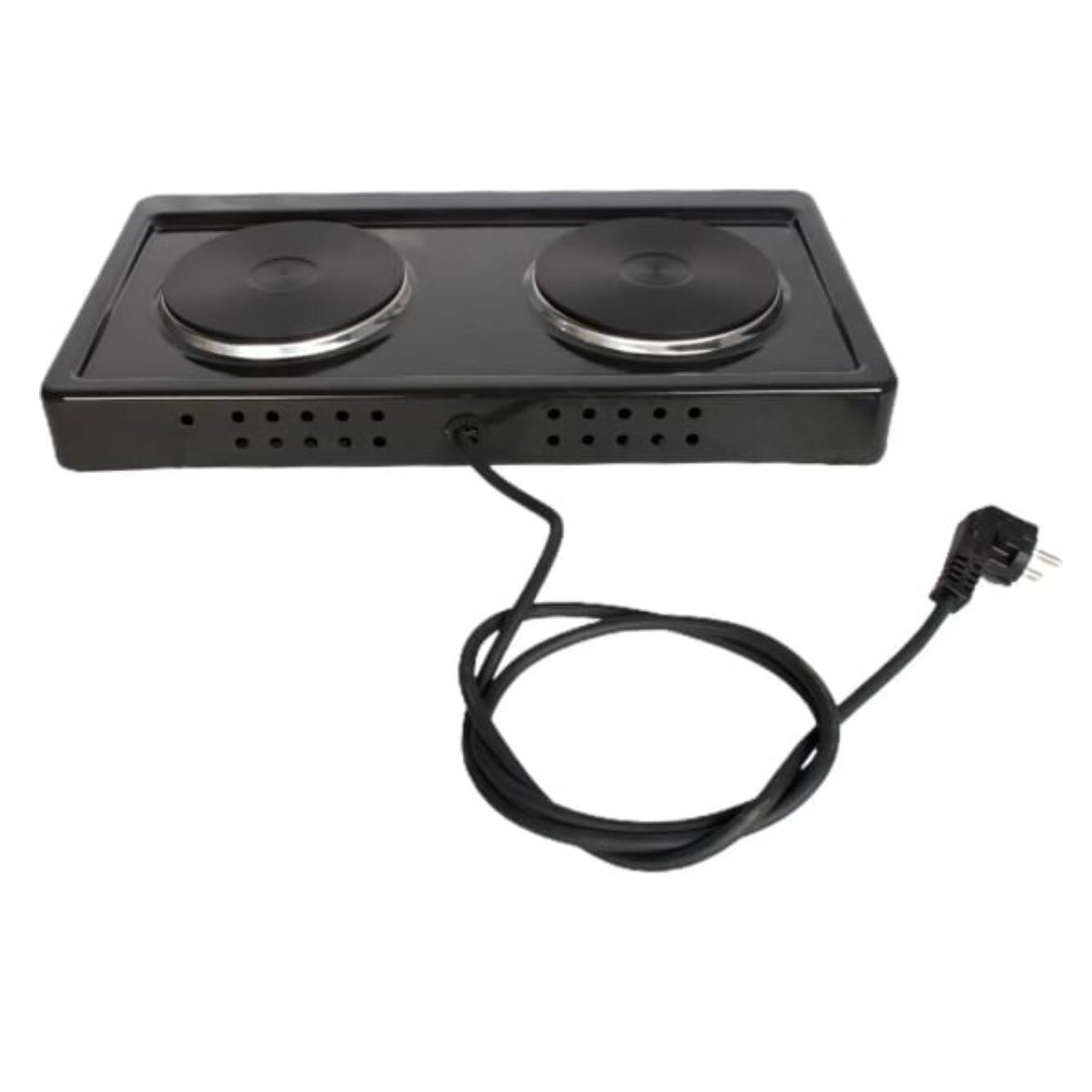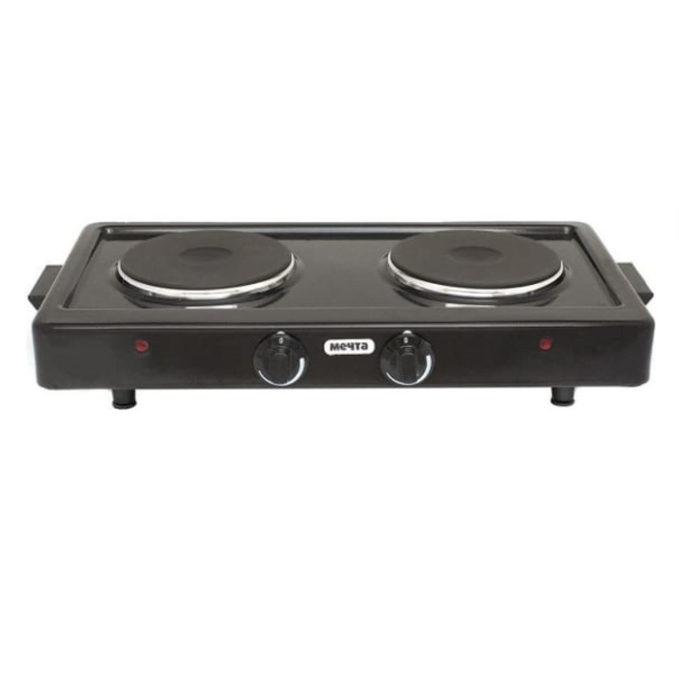 тип конфорок: чугунные; мощность каждой конфорки: 1 кВт, диаметр 14,5 см; бесступенчатое регулирование мощности; индикация включенного состояния электроконфорок; опорные ножки плитки оборудованы вкладышами противоскольжения; стеклоэмалевое покрытие; вес 4,5 кг
