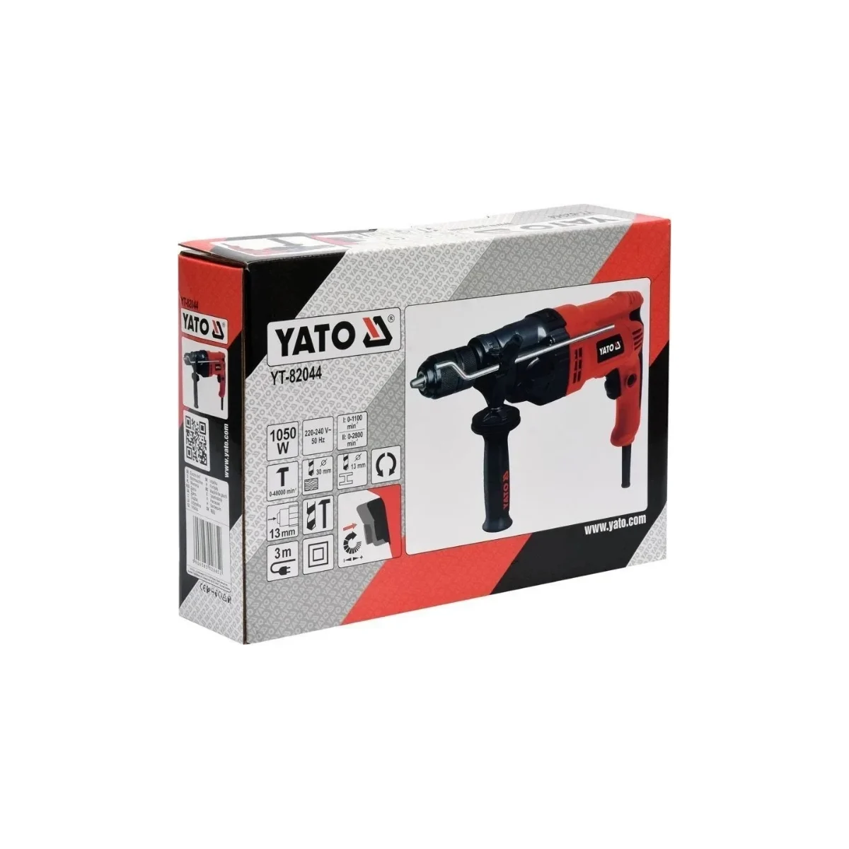 Ударная дрель YATO 1050 Вт YT-82044 - чрезвычайно мощная двухскоростная дрель мощностью 1050 Вт, обеспечивающая очень высокий крутящий момент на первой передаче, идеально подходит для сверления кольцевыми пилами и шнеками. На второй передаче с молотком, будет хорошо работать при сверлении в бетоне, даже сверлом 20 мм.