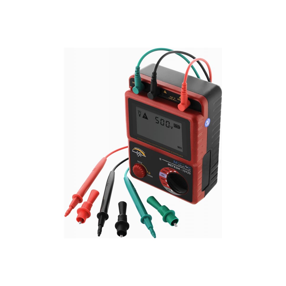 Тестовое напряжение: 100, 250, 500, 1000, 2500 В