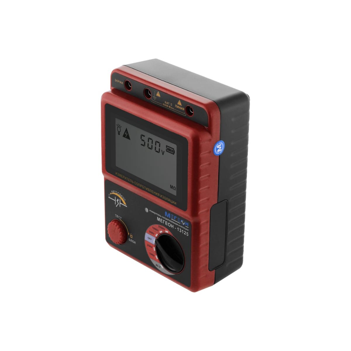 Мегаомметр представляет собой прибор для точного измерения сопротивления изоляции, используя высокое испытательное напряжение (до 2500 В). В случае длительного простоя он автоматически отключается, обеспечивая экономию заряда элементов питания. Модель защищена от перегрузки и надежна в эксплуатации. Частота измерений - 0.5-10 изм/сек.