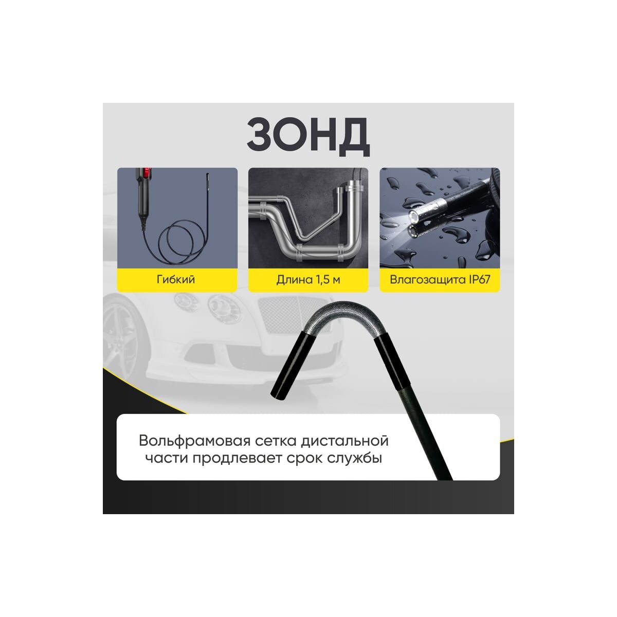 - Оплетка зонда выполнена из прочного водонепроницаемого полиуретана стойкого к истиранию