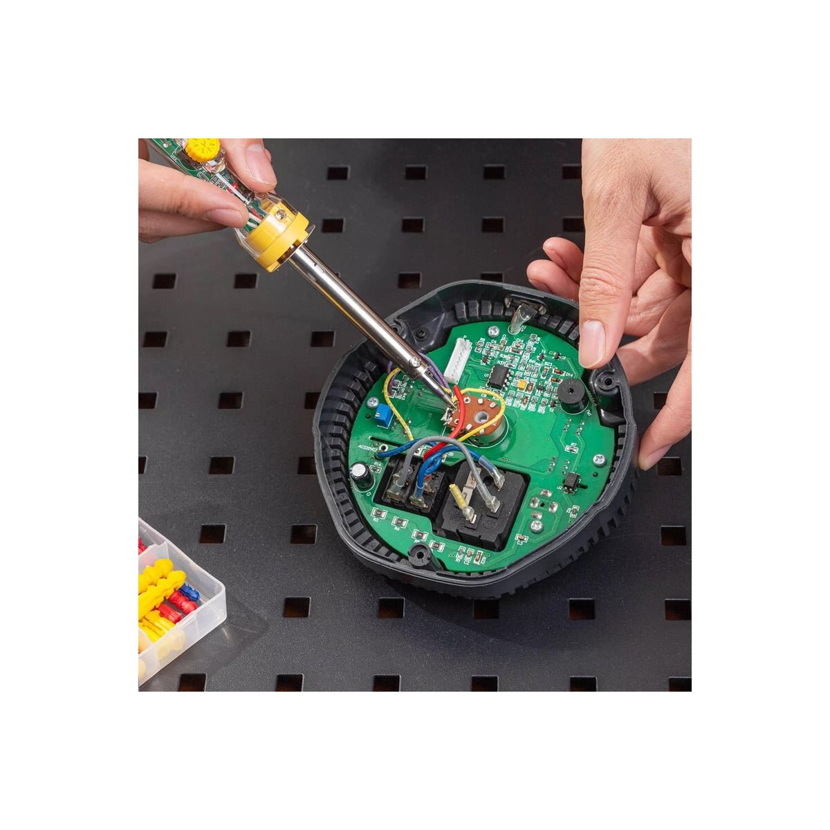 Электрический паяльник с регулировкой и керамическим нагревателем DELI DL8820 (60вт, 200-450 град) 103006 - используется для ручной пайки и распайки элементов при ремонте или монтаже радио- и электронной техники. Устройство удобно держать в руках в процессе работы.