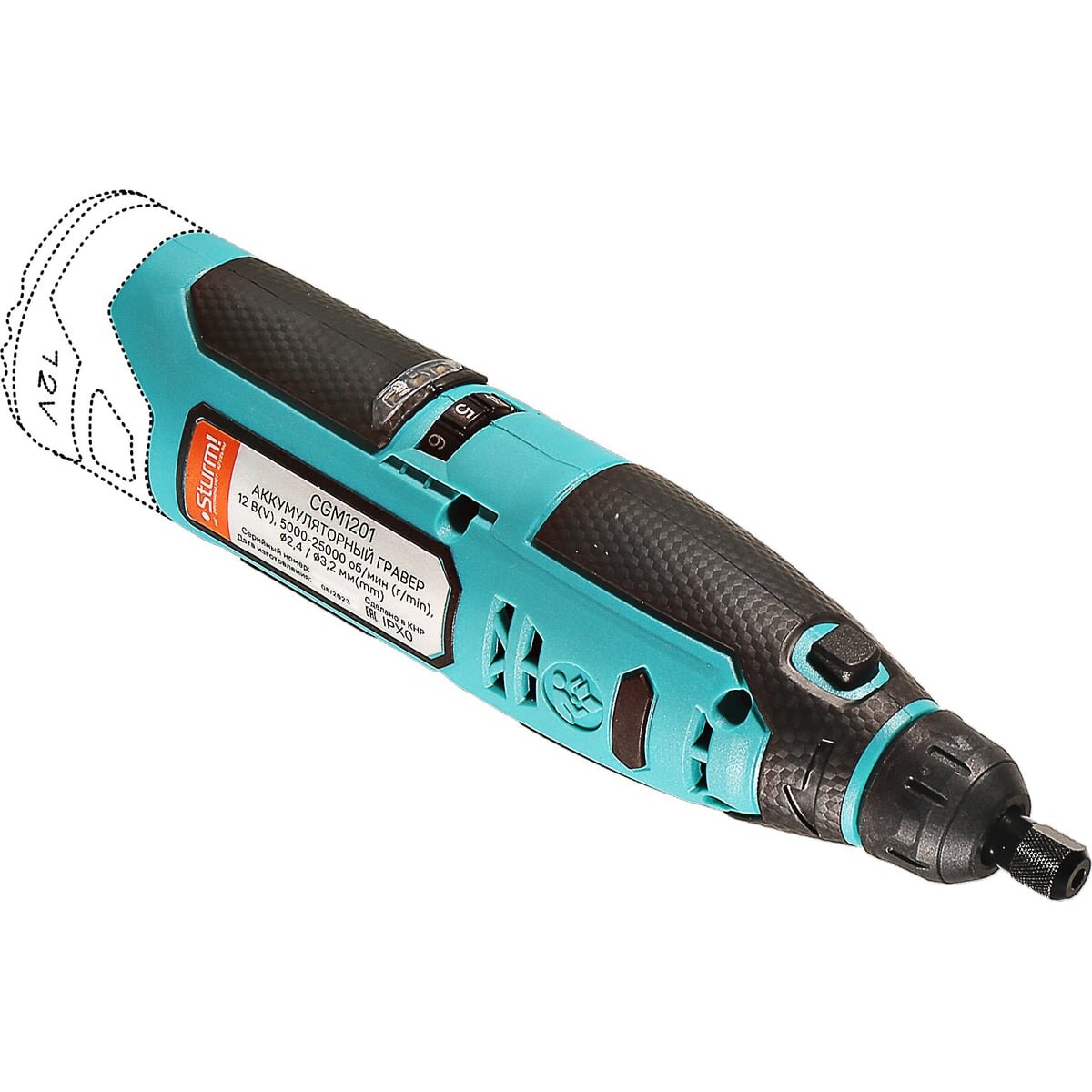 Гравер аккумуляторный Sturm! CGM1201— незаменим для шлифования, полирования, гравировки, заточки и многих других работ. Эргономичный корпус из прочного пластика обеспечивает долгую и комфортную работу в любых условиях эксплуатации и лучший контроль над инструментом благодаря малому весу и удобной для обхвата форме. Регулируемая в диапазоне 5000-25000об/мин скорость обеспечивают хороший контроль при работе с различными материалами. Производительный и компактный двигатель обеспечивает ровное поступательное ведение инструмента и позволяет уверенно производить обработку сложных поверхностей с достойным качеством. Система крепления насадок с использованием двух типовых диаметров фиксирующей цанги 2.4/3.2 мм облегчает подбор оснастки и значительно расширяет диапазон применения инструмента. Данная модель является частью системы 1BatterySystem12V и совместима со всей линейкой аккумуляторного инструмента. Для Вашей выгоды модель поставляется без аккумулятора и зарядного устройства.