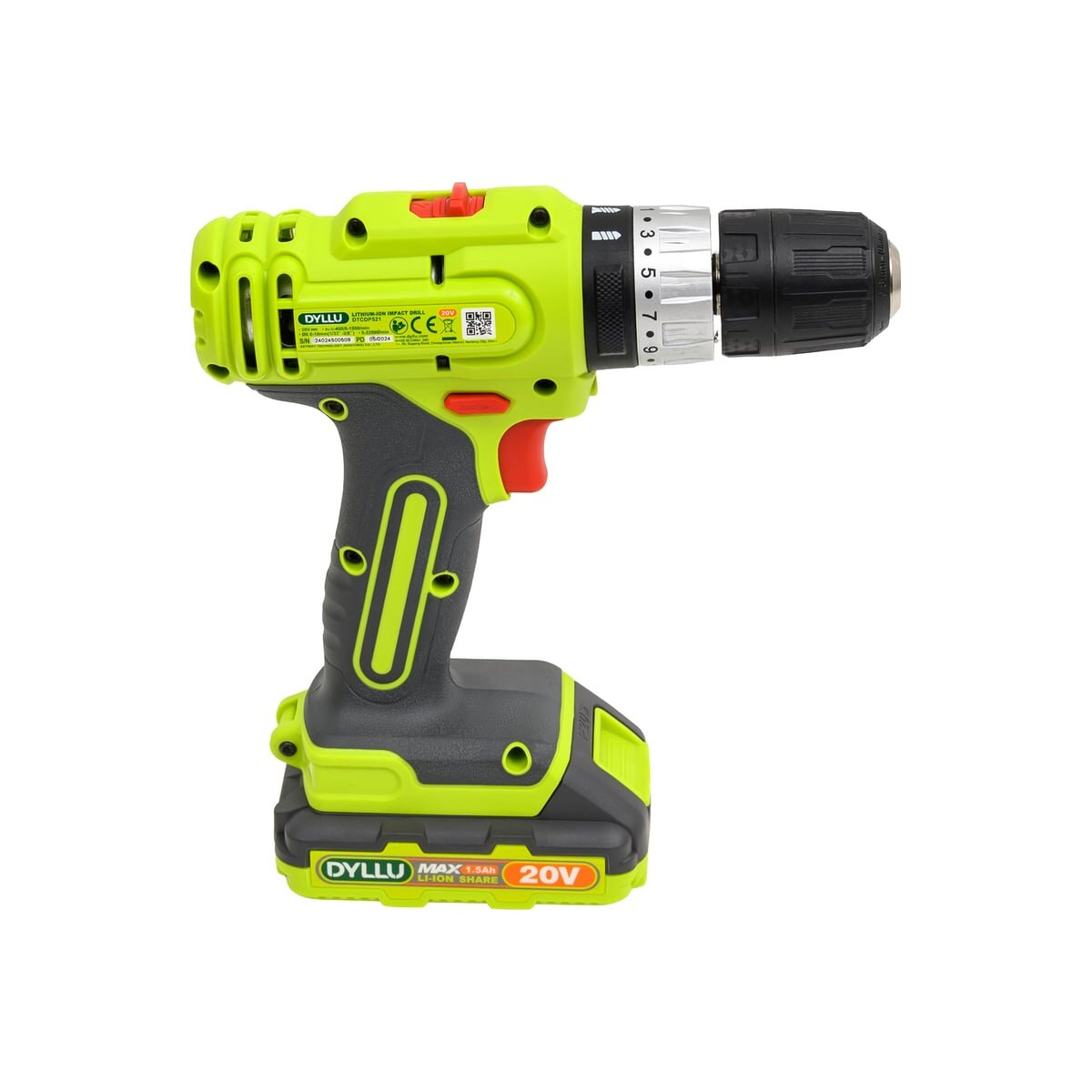 Аккумуляторная дрель-шуруповерт DYLLU DTCDP521 также работает от напряжения 20В и имеет аналогичные характеристики: скорость холостого хода 0–400–0–1500 об/мин, максимальный крутящий момент 35Нм и пластиковый патрон с диапазоном зажима 0.8–10 мм. Регулировка крутящего момента (15+1) и двухскоростной режим работы обеспечивают гибкость при выполнении различных задач. Встроенная светодиодная подсветка помогает работать в условиях плохого освещения. В комплект входит аккумулятор емкостью 1.5Ач и зарядное устройство. Встроенная светодиодная подсветка.