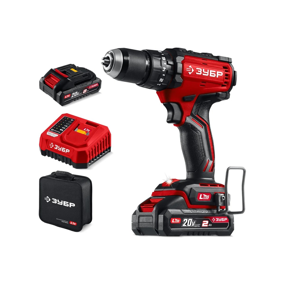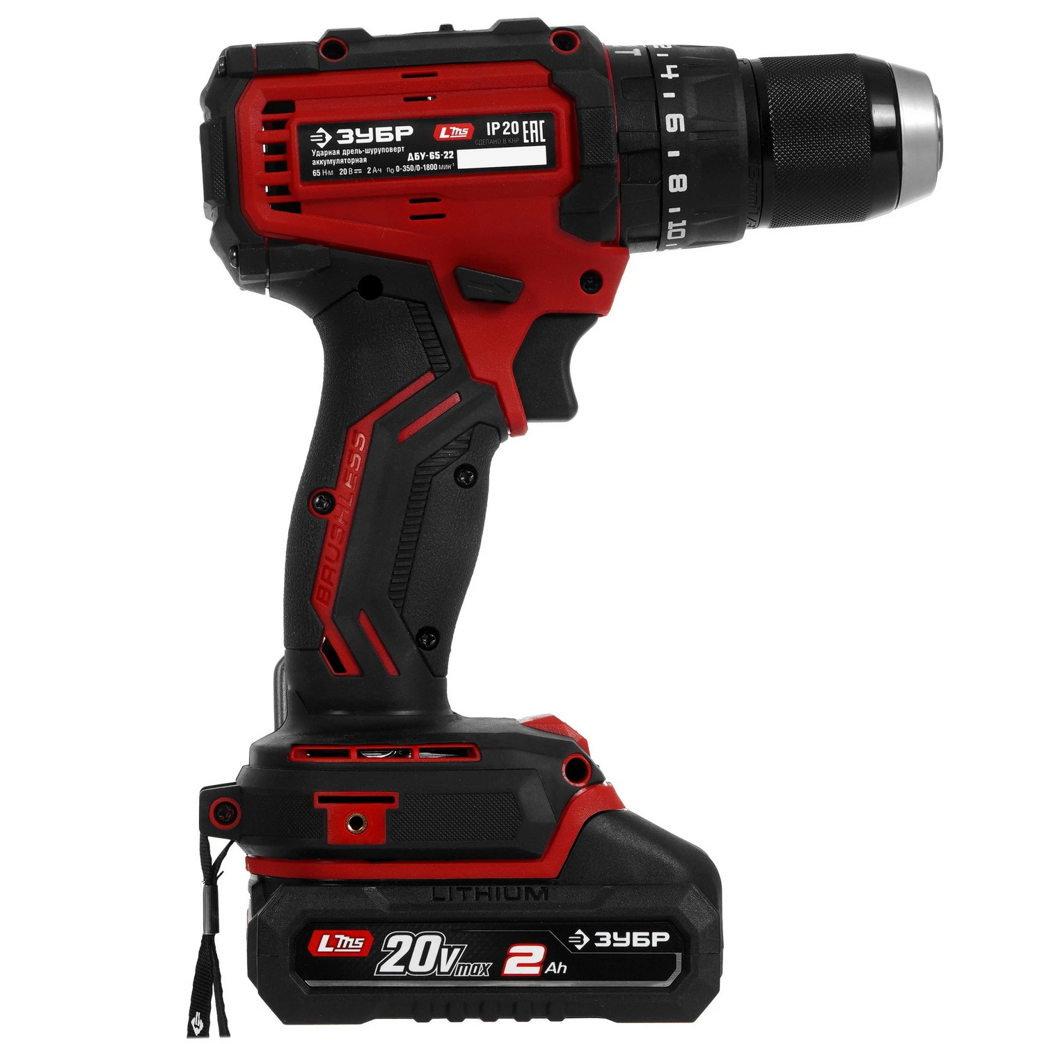 ЗУБР 20 В, 65 Н·м, 2 АКБ LMS (2 А·ч), бесщеточная ударная дрель-шуруповерт, сумка ДБУ-65-22 - бесщеточная дрель-шуруповерт ЗУБР системы LMS с увеличенным крутящим моментом предназначена для быстрого заворачивания саморезов до 8 мм диаметром и сверления отверстий до 30 мм в дереве. Длительная работа от одного заряда обеспечивается эффективным двигателем BRUSHLESS. Расширенная функциональность за счет ударного режима работы. Комплектация с двумя аккумуляторами позволяет работать практически без остановки.
