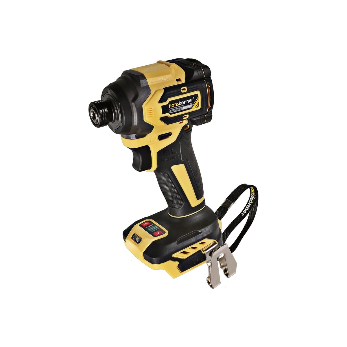 Hanskonner HCD20280BLС аккумуляторный 18 В, ударный винтоверт с гнездом под шестигранник 1/4 ″–является частью системы 1BatterySystem, обеспечивающей совместимость одного и того же аккумулятора с целым рядом наименований инструмента. Модель обладает максимально сбалансированной компоновкой: небольшие размеры корпуса и рукояти позволяют эффективное использование в условиях с затрудненным доступом, а нейтральный центр тяжести, и обилие прорезиненных противоскользящих поверхностей способствуют надежному хвату, и лучшему контролю. Винтоверт оснащен 18 В бесщеточным двигателем, характеризующимся на 30% лучшей производительностью в сравнении с коллекторными аналогами. Кроме того, бесщеточный двигатель отлично справляется с кратковременными перегрузками и не склонен к перегреву. Благодаря применению мощного планетарного механизма, Hanskonner HCD20280BLС уверенно демонстрирует высокие показатели крутящего момента (до 280 Н м), что позволяет работать с крепежом большой длины и диаметра. Винтоверт имеет четыре режима настройки момента затяжки: 60 Н м, 120 Н м, 180 Н м, 280 Н м – пользователь выбирает нужный, исходя из конкретного материала и крепежа. Модель оснащена функцией AutoStop, плавно останавливающей вал шпинделя сразу после откручивания крепежа. К особенностям Hanskonner HCD20280BLC стоит отнести эффективную LED-подсветку рабочей зоны WorkingLight с блоком коллиматорных линз, создающих направленный симметричный луч, а также индикатор остаточного заряда аккумулятора PowerCheck.