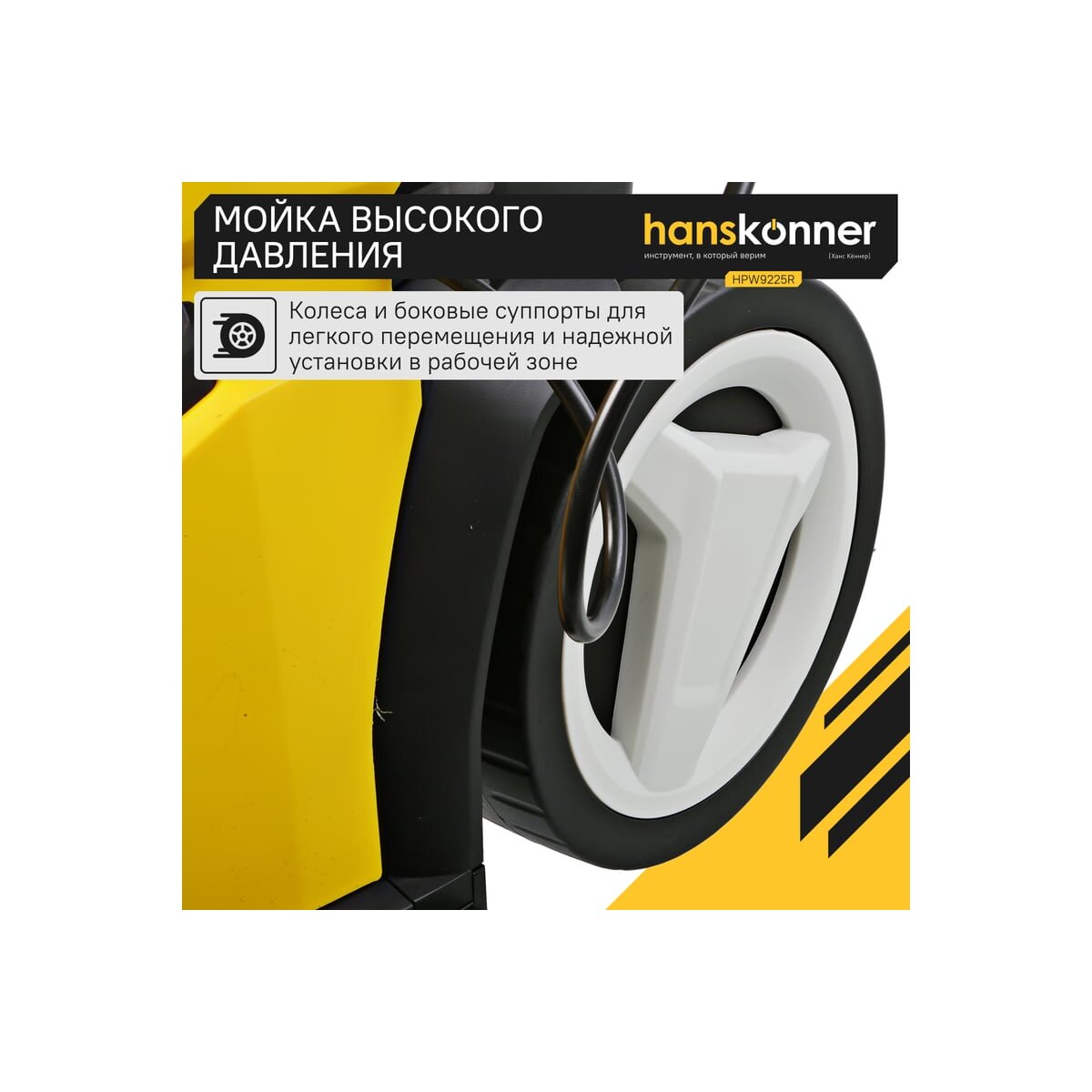 1.Колеса облегчают перемещение Hanskonner HPW9225R по рабочей территории.