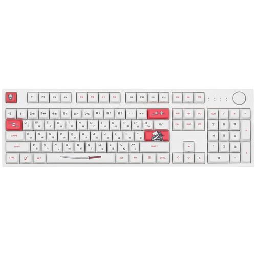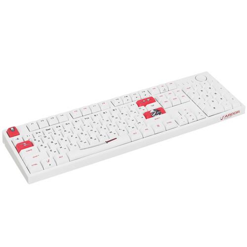 Клавиатура ARDOR GAMING Katana [AG-ZD-104GT-XDA-HS-W] выполнена в белом корпусе с красными клавишами и рисунками в самурайском стиле. Она разработана для точного и комфортного управления в играх. Механические переключатели Gateron Mint с укороченным ходом 2 мм и ресурсом 80 млн нажатий обеспечивают быструю реакцию. Благодаря смазанным стабилизаторам каждое нажатие выполняется легко и плавно.