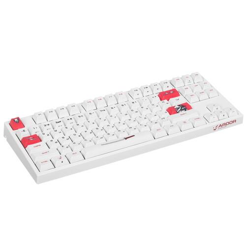 Клавиатура ARDOR GAMING Wakizashi [AG-ZD-87GT-HS-W] выполнена в корпусе белого цвета и дополнена подсветкой с палитрой RGB. Модель с 87 клавишами создана для поклонников компьютерных игр. Клавиатура оснащена механическими переключателями Gateron Mint с укороченным ходом 2 мм, что обеспечивает высокую точность срабатывания в играх. Стабилизаторы обеспечивают легкое и плавное нажатие.