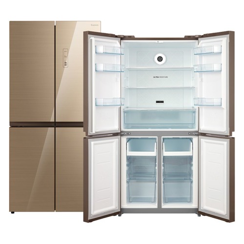 количество камер: трехкамерный; расположение морозильной камеры- снизу, размораживание морозильной камеры- No Frost, общий объем 466л, защита от детей, цвет: бежевый